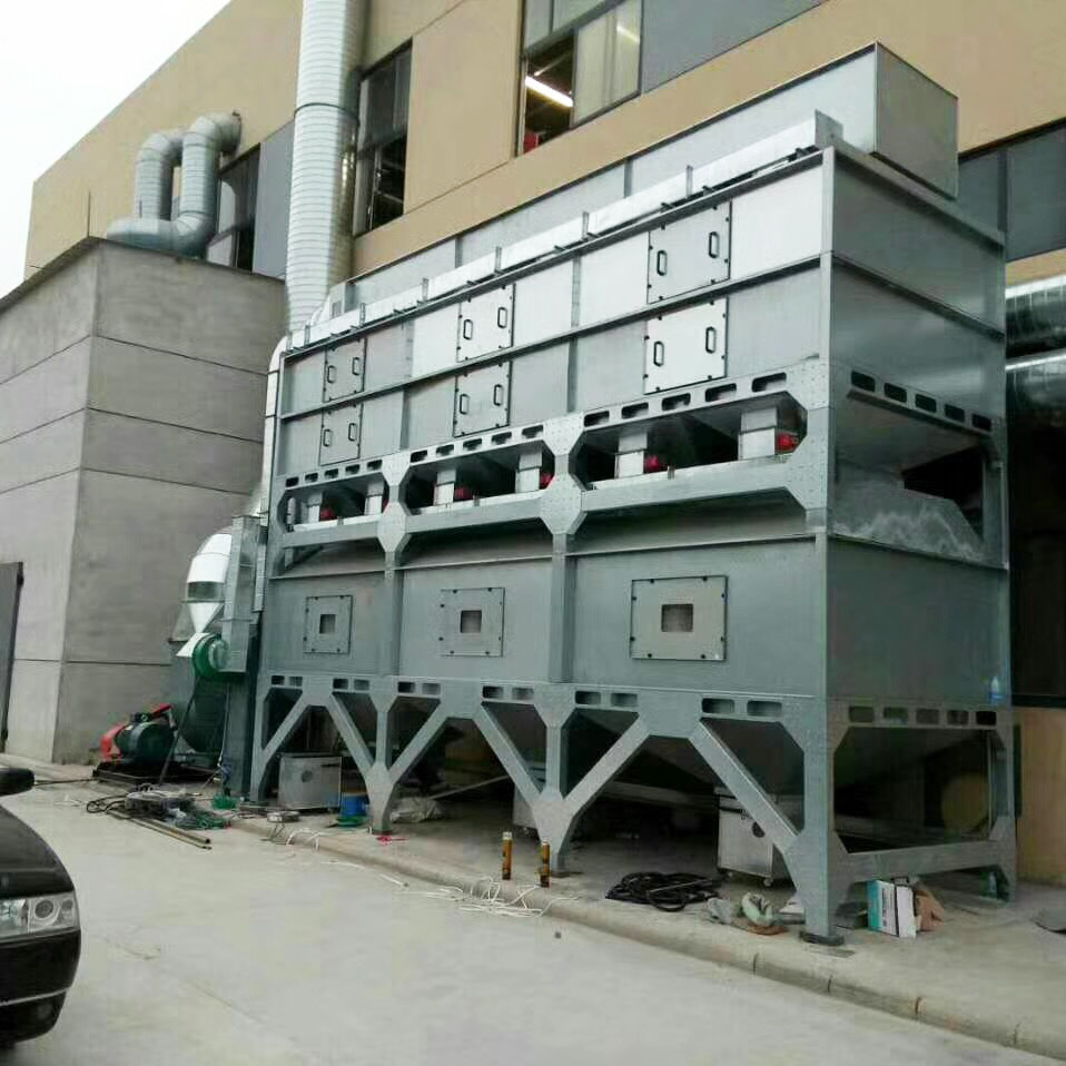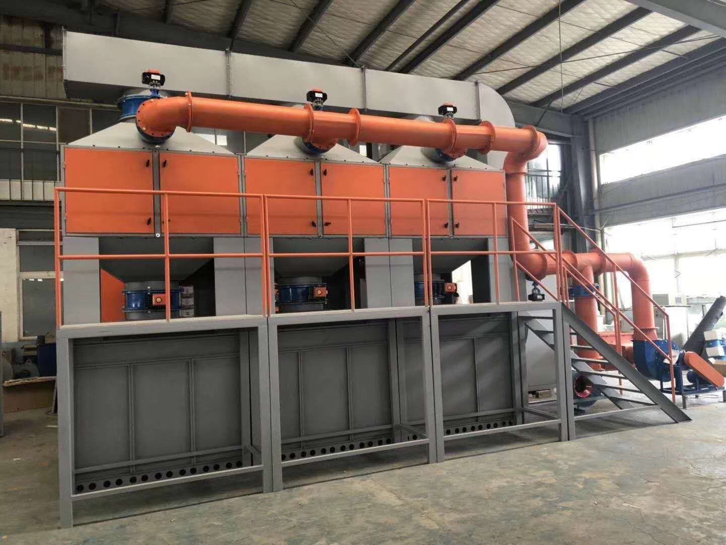 (3)吸附催化燃烧,当大的有机废气流量、低浓度、低温度,使用催化燃烧需要大量的燃料消耗,可以使有机废气吸附在吸附剂上的吸附浓度,然后通过热空气吹扫,使有机废物气体剥离高浓度有机废气(可以集中超过10倍),然后催化燃烧。此时,无需添加热源,就可以保持正常运行。