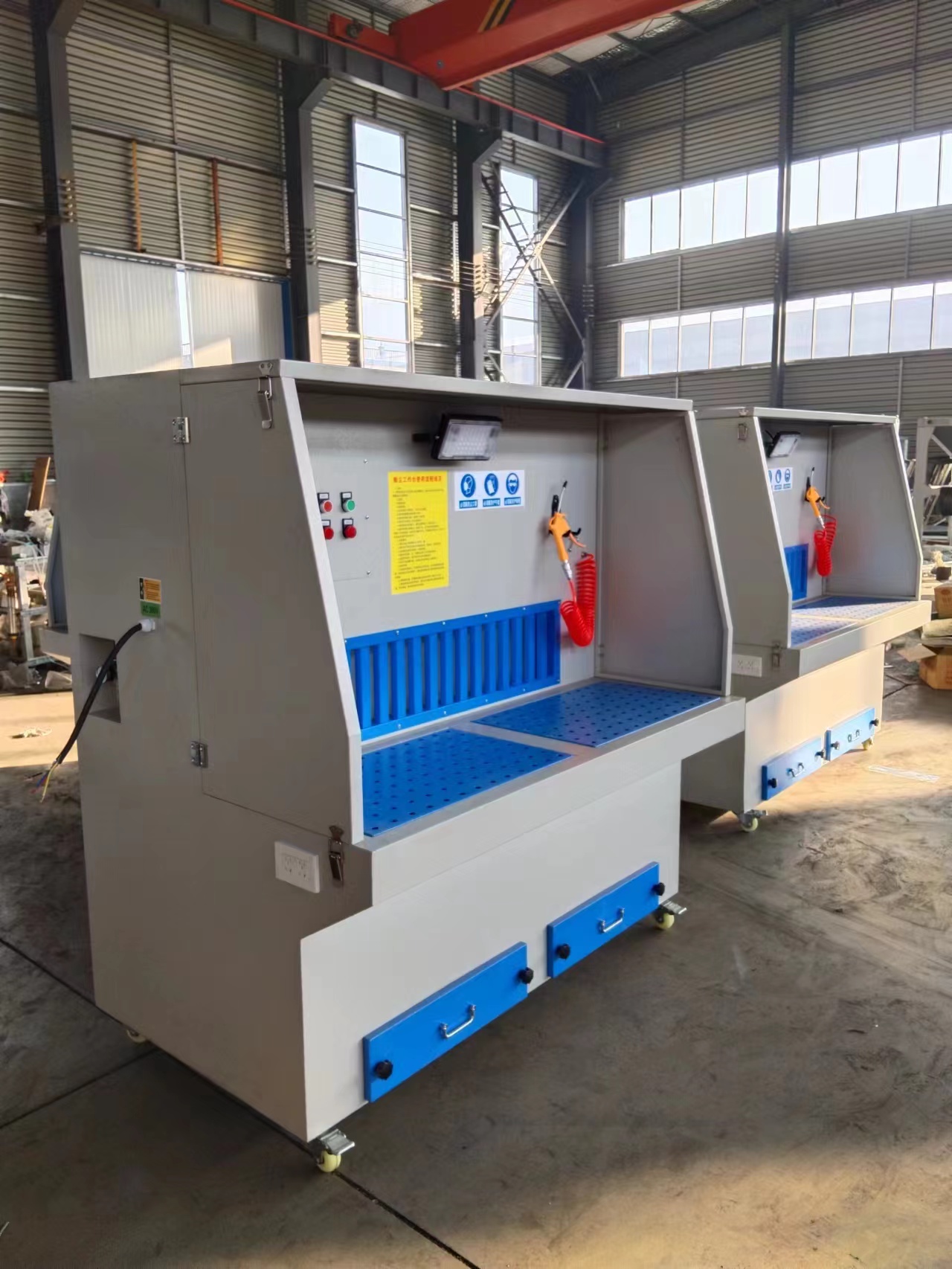 干式打磨台作为一种高效的粉尘处理设备,在多个行业中发挥着关键作用,适用场景广泛且优势突出。在家具制造行业,干式打磨台可处理木材打磨产生的木屑粉尘;金属加工行业中,能收集金属构件打磨时的金属粉尘;汽车维修与改装领域,可应对车身打磨产生的腻子粉尘、金属粉尘等;此外,在石材加工、塑料件打磨等行业也有重要应用。其核心优势在于无需依赖水资源,避免了湿式除尘可能产生的污水排放问题,同时干式打磨台结构相对紧凑,安装灵活,能根据不同车间布局调整位置,且对粉尘的收集效率高,可有效保护操作人员健康,符合环保要求,这些特点让干式打磨台在各行业粉尘处理中备受青睐。