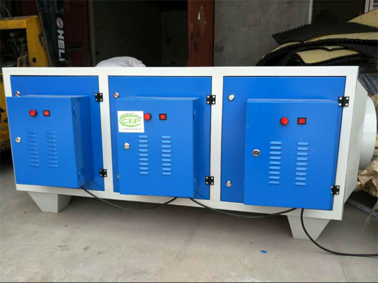 低温等离子废气净化器在产生等离子体的过程中,高频放电所产生的瞬间量能够打开某些有害气体分子的化学能,如:氨、硫化氢、甲硫氢、甲硫醇、甲硫醚、二甲二硫、二硫化碳和苯乙烯,硫化物H2S、VOC类,苯、甲苯、二甲苯的分子链结构,使有机或无机高分子恶臭化合物分子链分解为单质原子或无害分子。