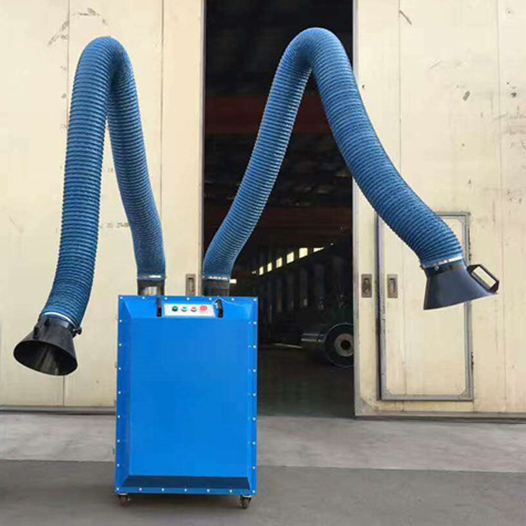 移动式焊烟净化器是专为焊接作业产生的烟尘过滤净化处理而设计的轻便高效除尘设备,内设阻火器、高精度焊接烟尘防火阻燃型滤筒,在紧凑型高效离心风机的抽吸作用下,烟尘通过柔性吸气臂收集进入过滤器,经滤筒过滤,清洁空气可直接排入车间